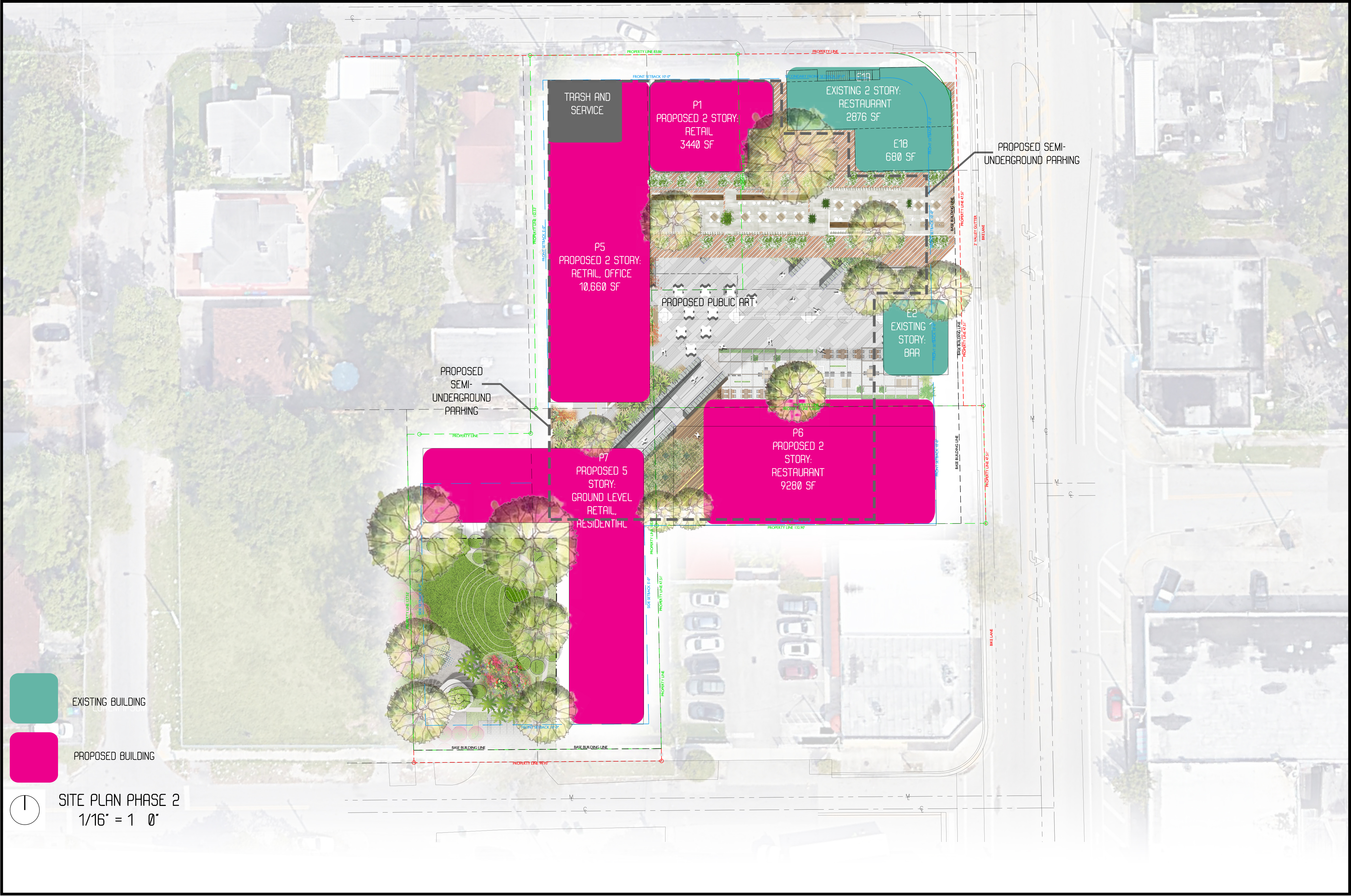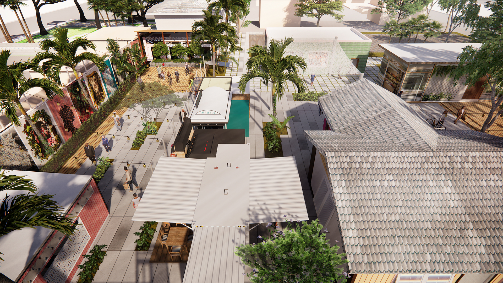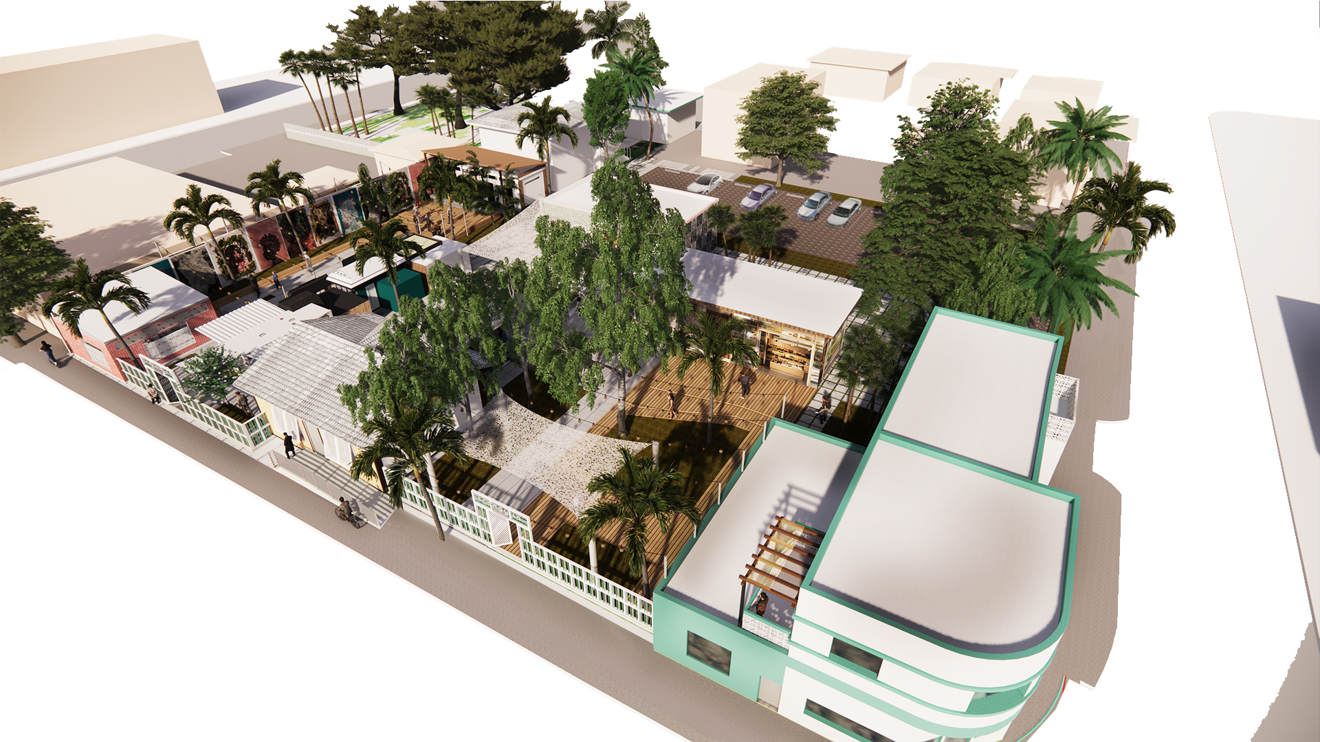 This proposal to adjoin and rezone commercial and residential lots in Little River is divided into two phases. The first phase opens space for local events and temporary vendors, while rehabilitating some existing structures. The second phase allows multi-story residences and offices, while retaining the