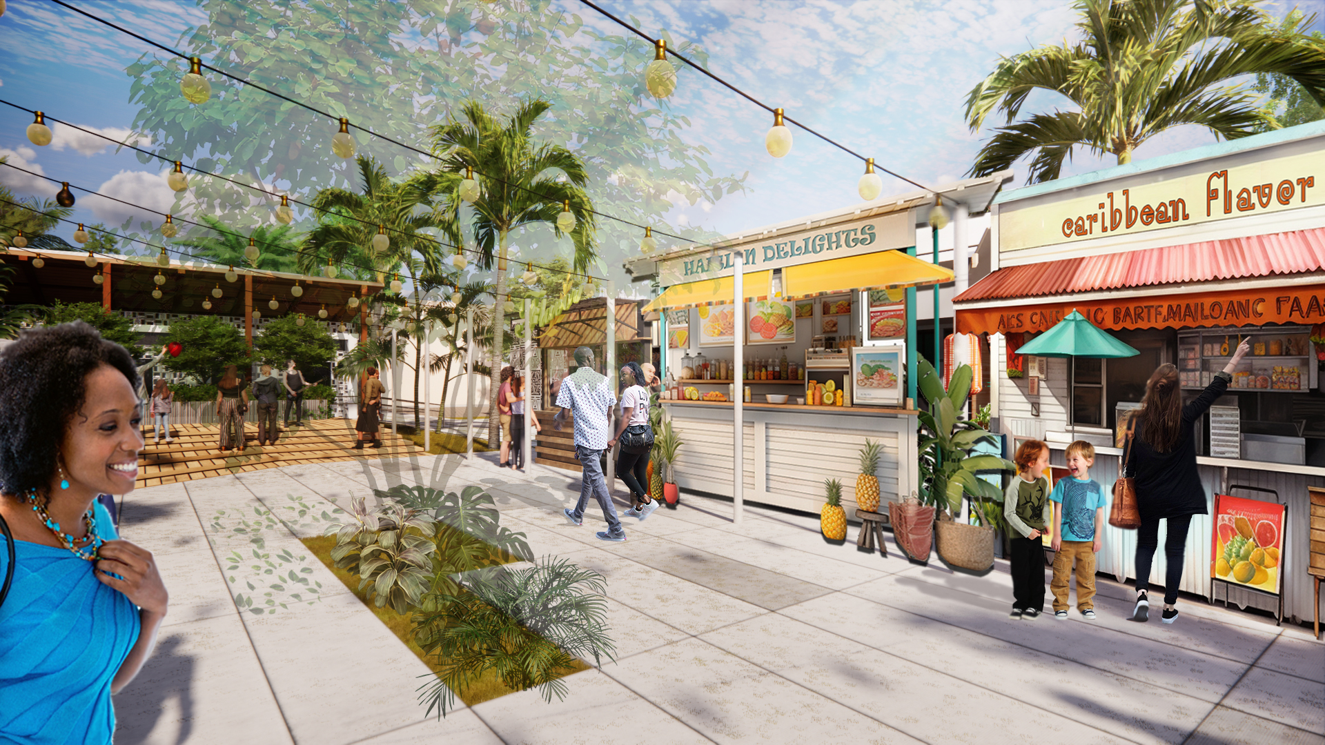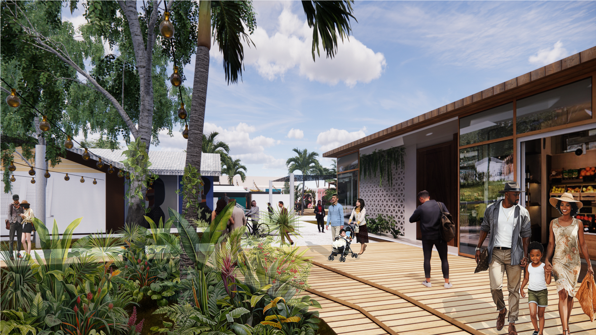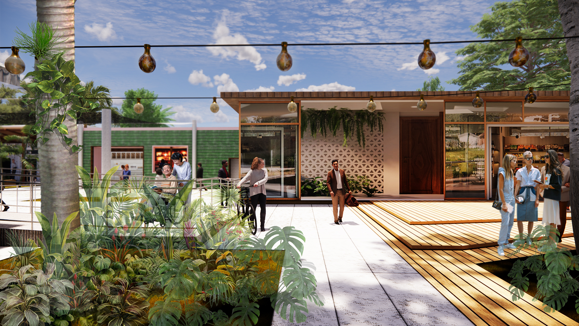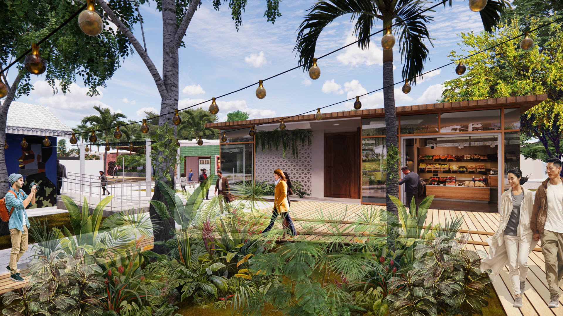 This proposal to adjoin and rezone commercial and residential lots in Little River is divided into two phases. The first phase opens space for local events and temporary vendors, while rehabilitating some existing structures. The second phase allows multi-story residences and offices, while retaining the
