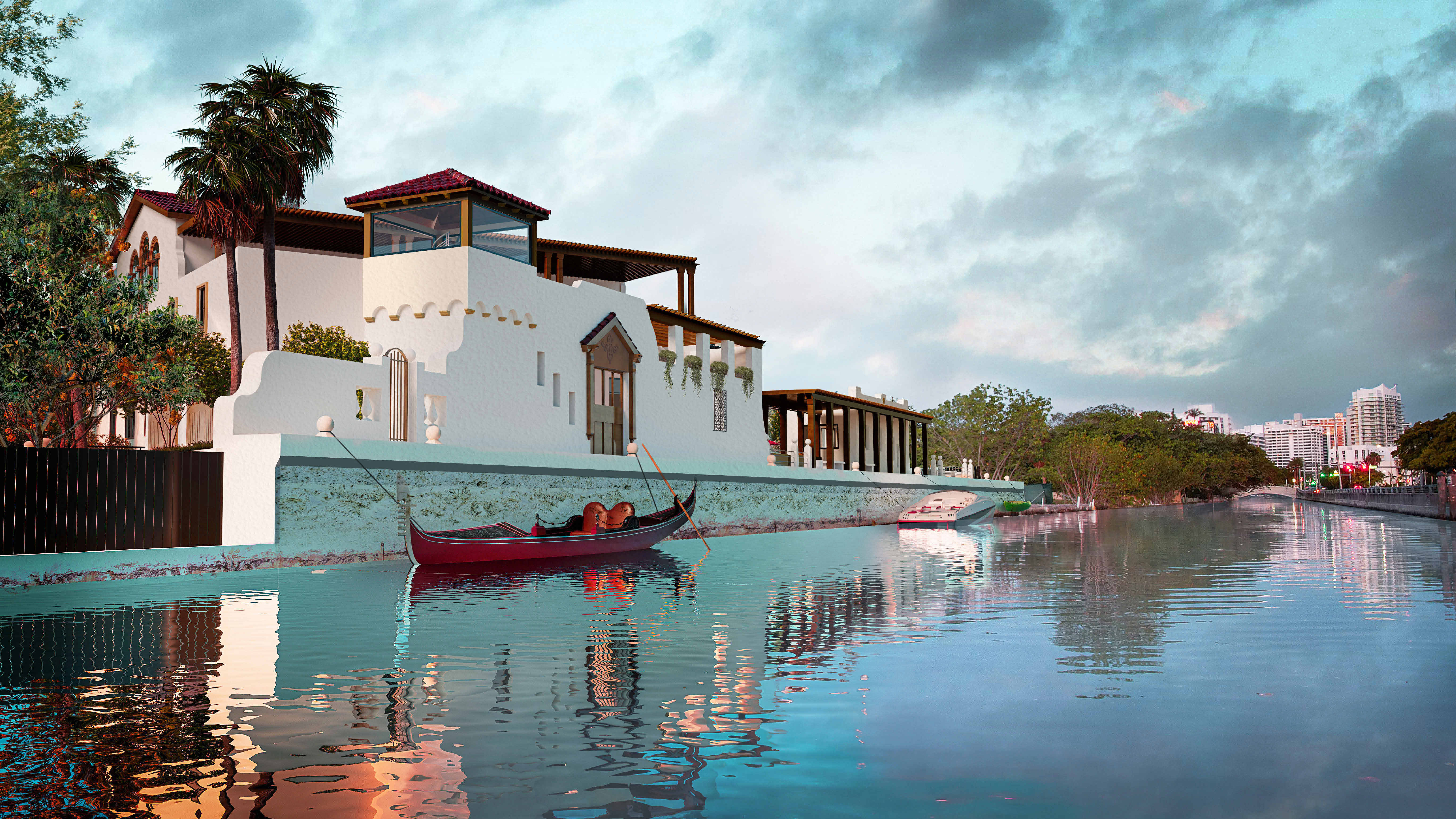 The proposed design employs multiple elements of the historic design that make this property one of the most unique in the city. This structure was widely publicized in its time in tinted postcards and atmospheric photographs depicting its Venetian-style canal front, complete with gondolas. Its venetian-inspired public elements and open courtyard have been retained and considerately enhanced, including the iconic three punch hole arched openings and its Mediterranean and Venetian