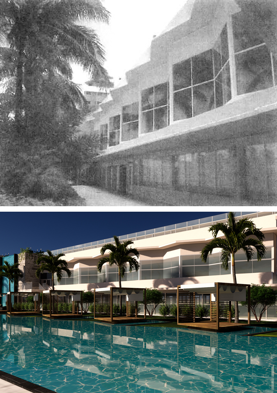 The south was buffered with a lush botanical garden/oasis feature. A bar component sat between the pool and the eastern edge of the property, welcoming guests on their stroll back from the beach. The original coral stone cladding was carried through other public areas of the design.