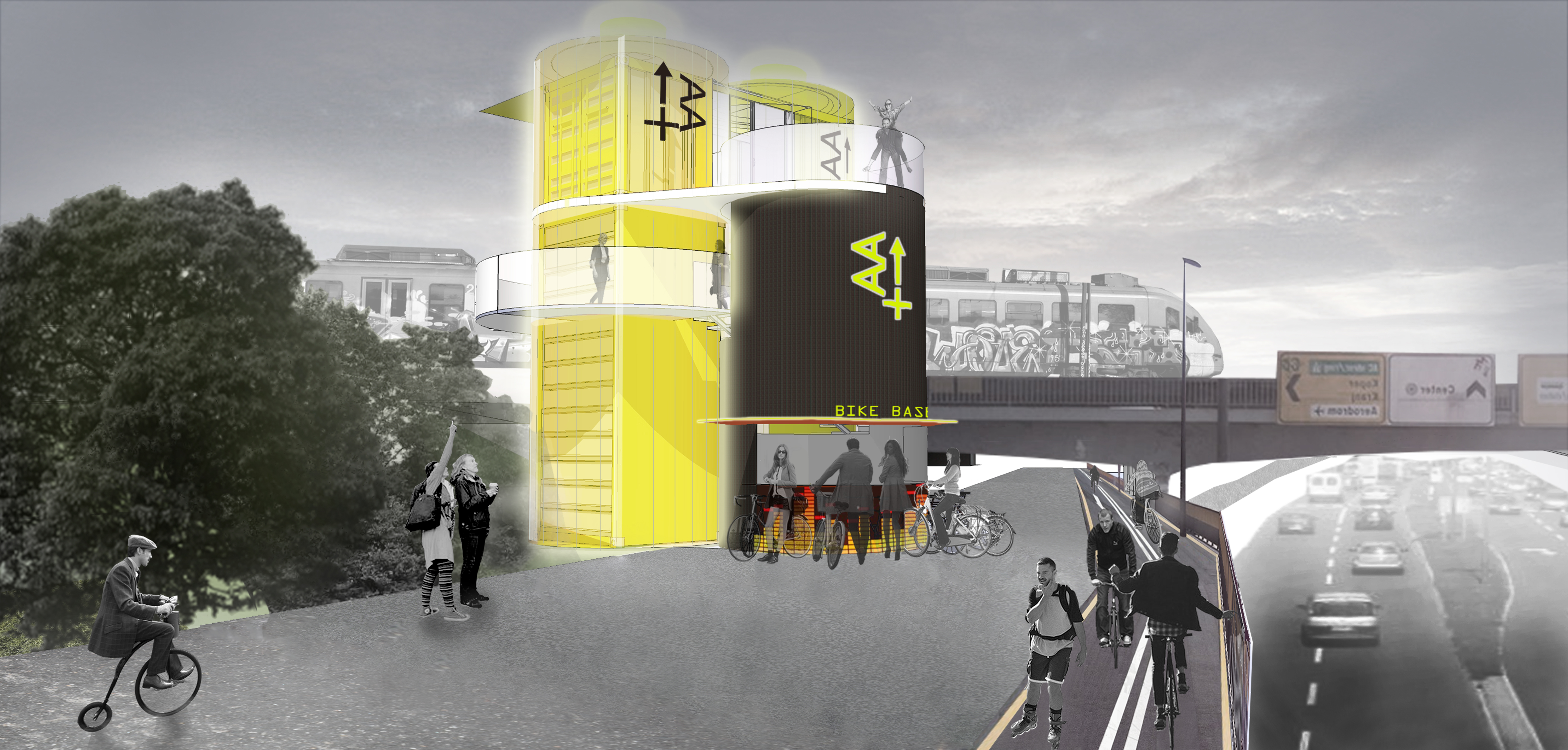 At night, using LED strip lights mounted on the modular units, charged during the day via photovoltaic panels, our Bike Base is a glowing reminder of what really powers the urban core: Humans in motion.