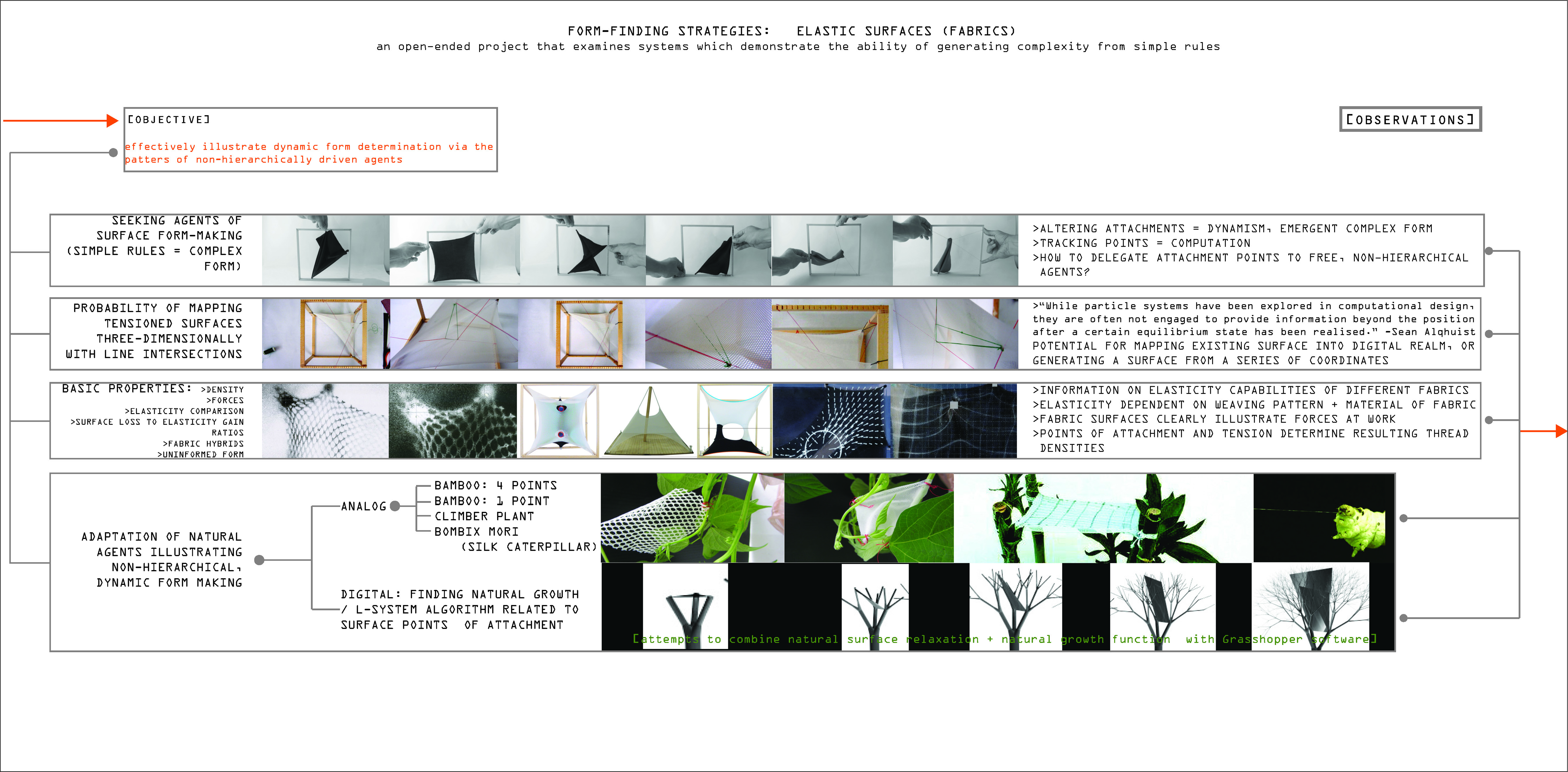 This fast-paced extracurricular workshop studied elastic fabrics' ability to portray and engage the phenomenon of emergent, self-organizing and unpredictable form.