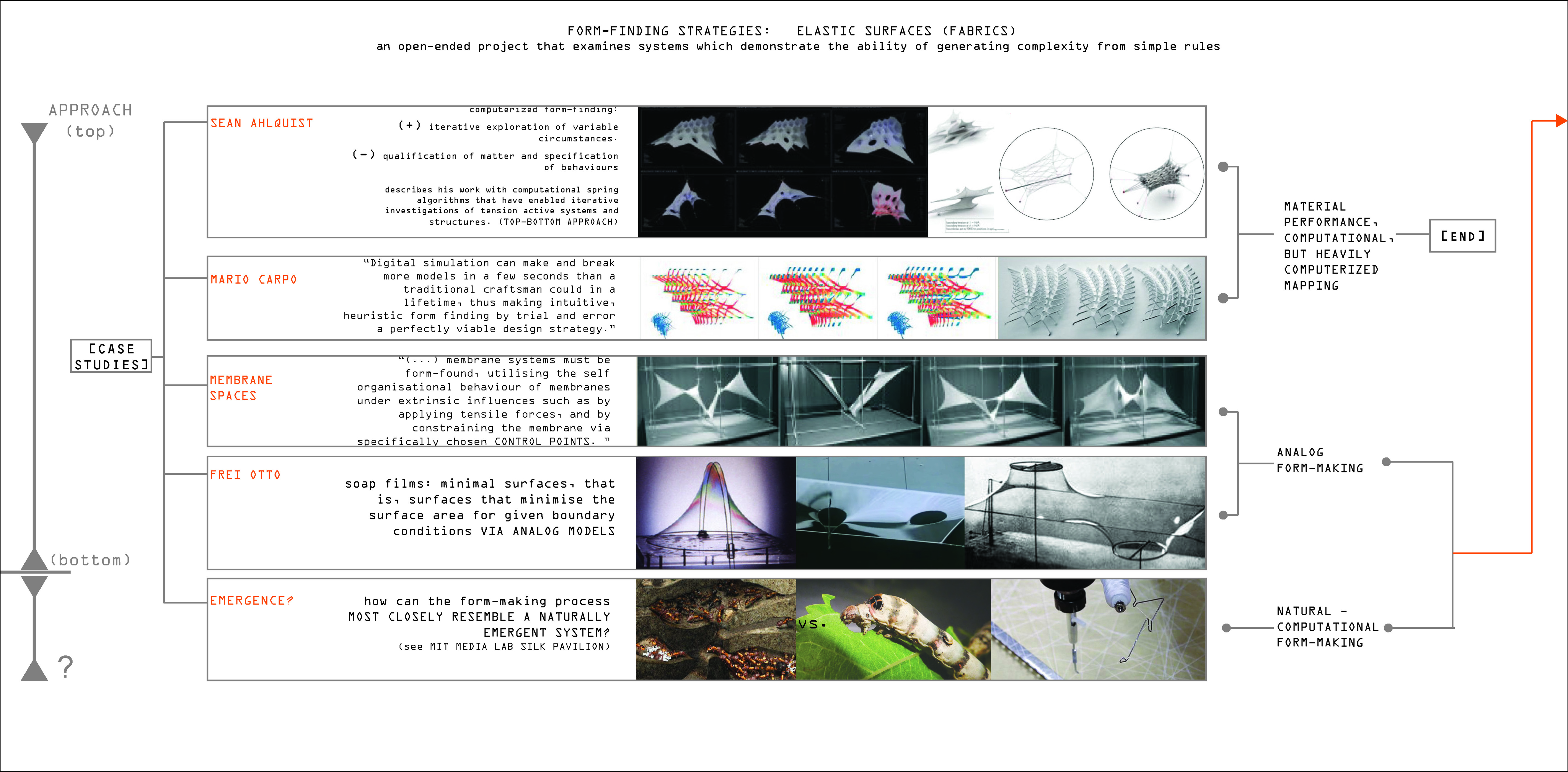 The workshop studied emergence as the natural, decentralized, non-hierarchical phenomenon of self-organization of form as yielded by the development of manual algorithms and logical processes via analog computation, and as influenced by material properties, context and other factors.