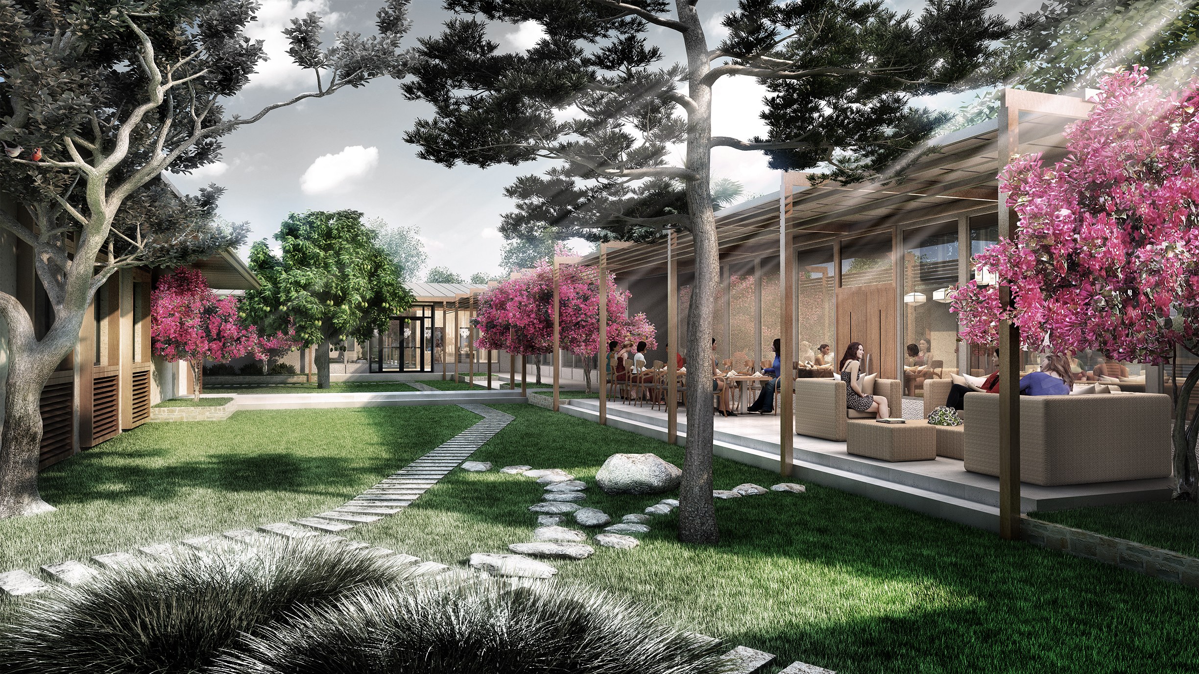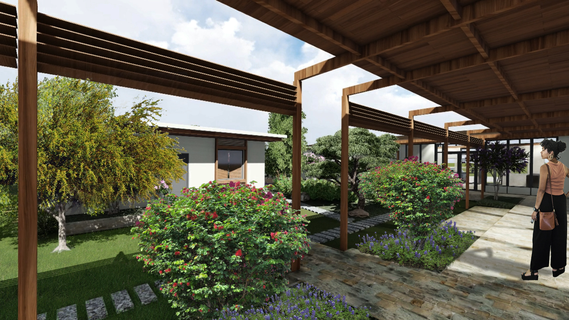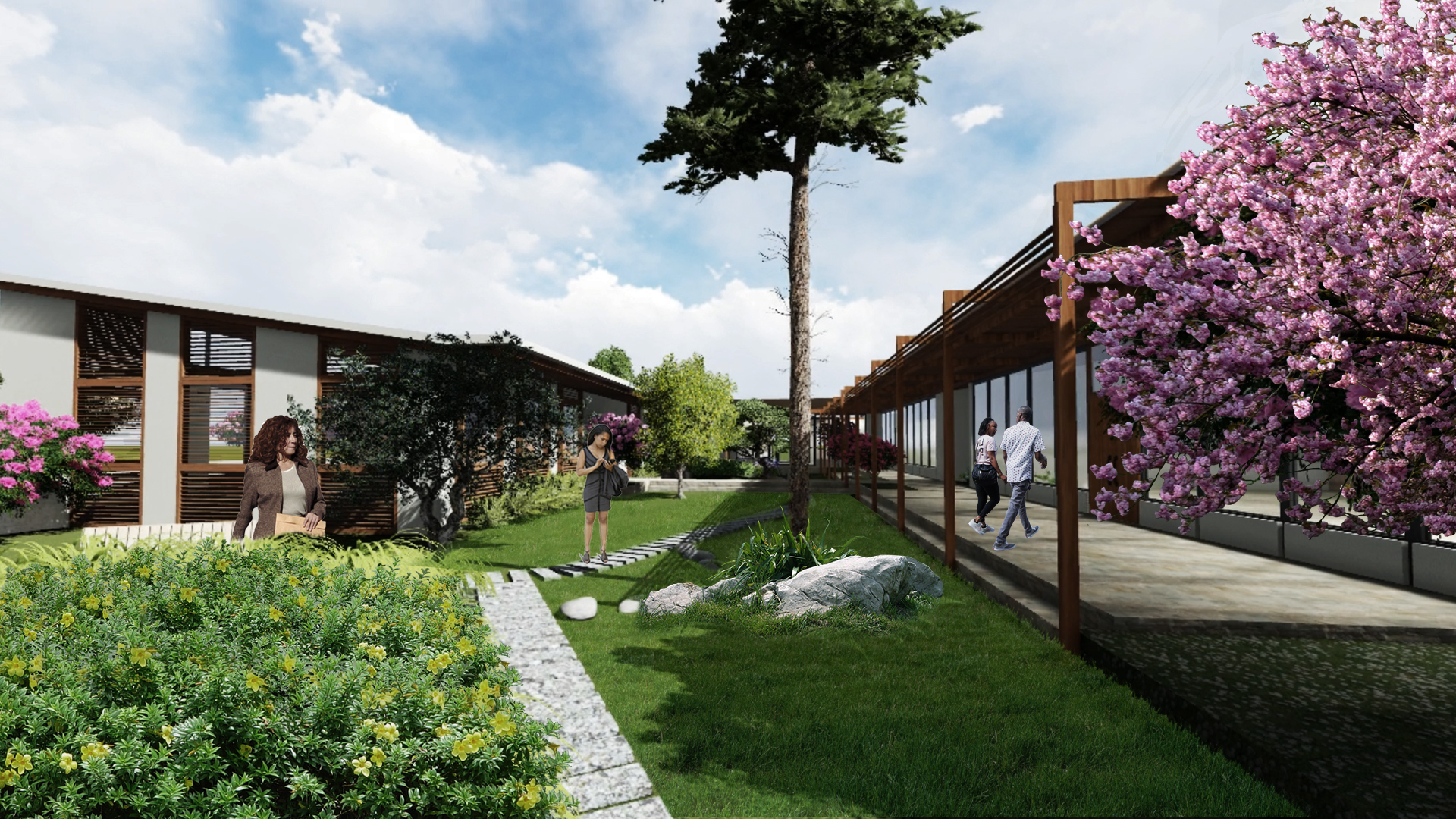 The main 40-bed, meeting, support, dining and administration spaces frame an open courtyard where nature is in the forefront (biophilic healing) and patients are encouraged to gather and be active. We propose materials familiar to everyone to encourage a sense of home, and a layout that is easy to navigate, where patients can feel in control of their environment.
