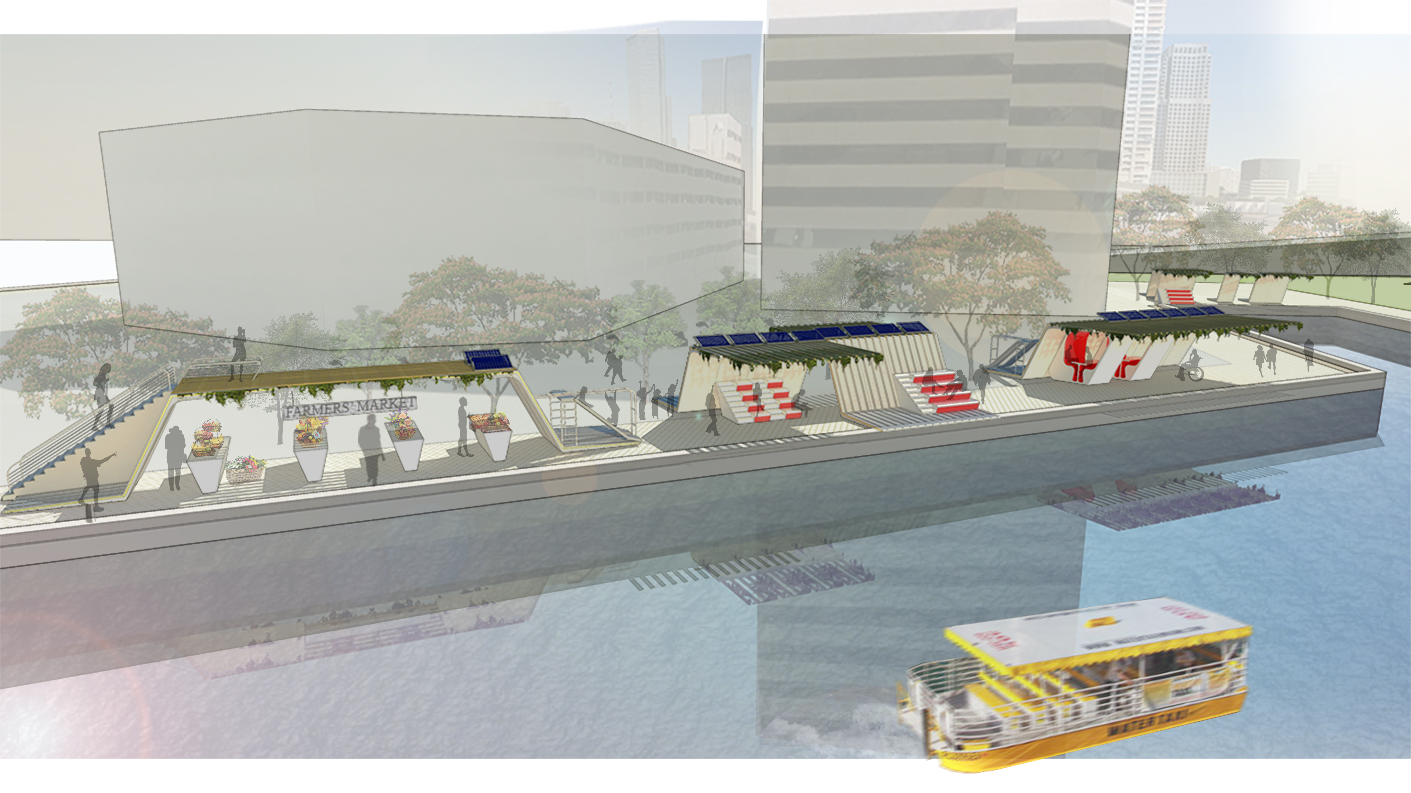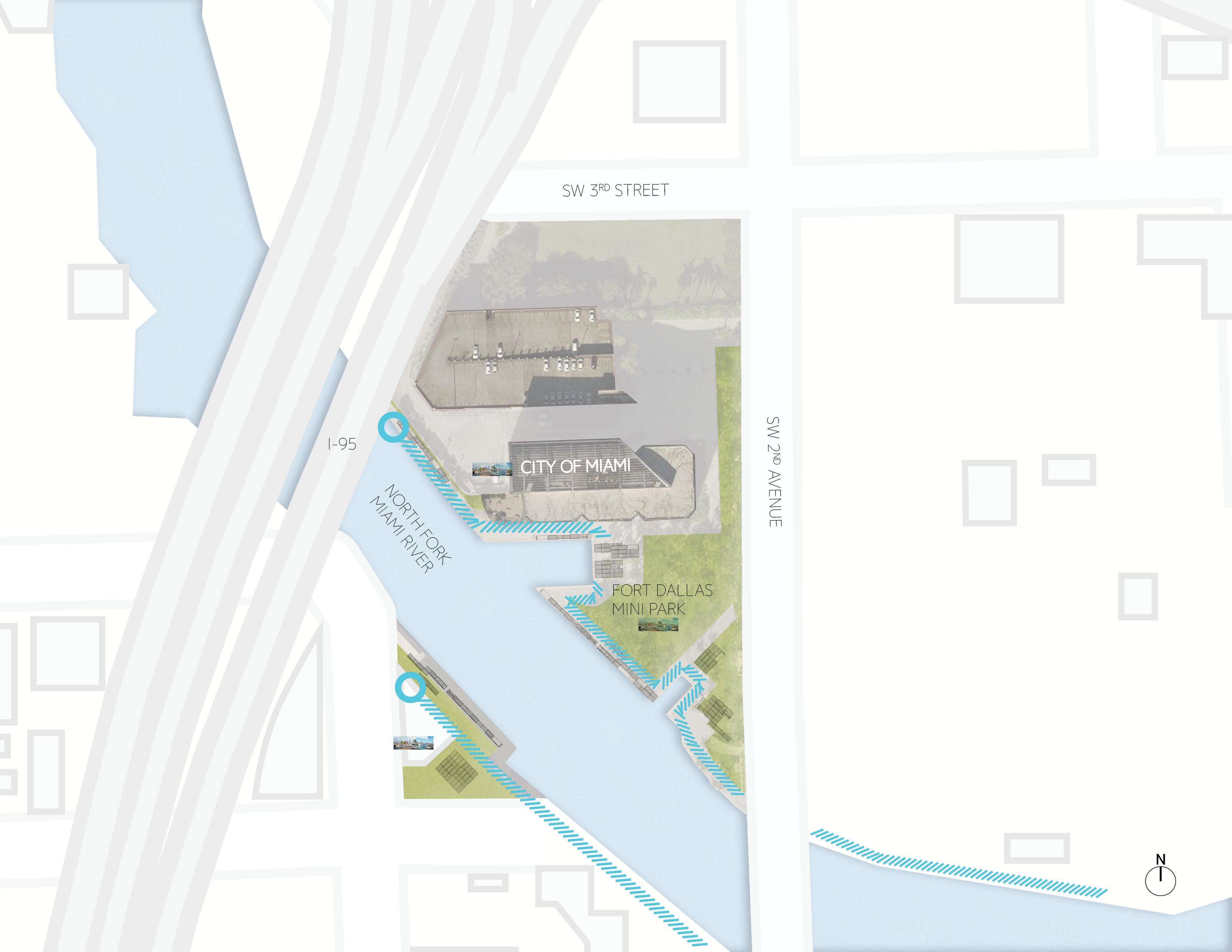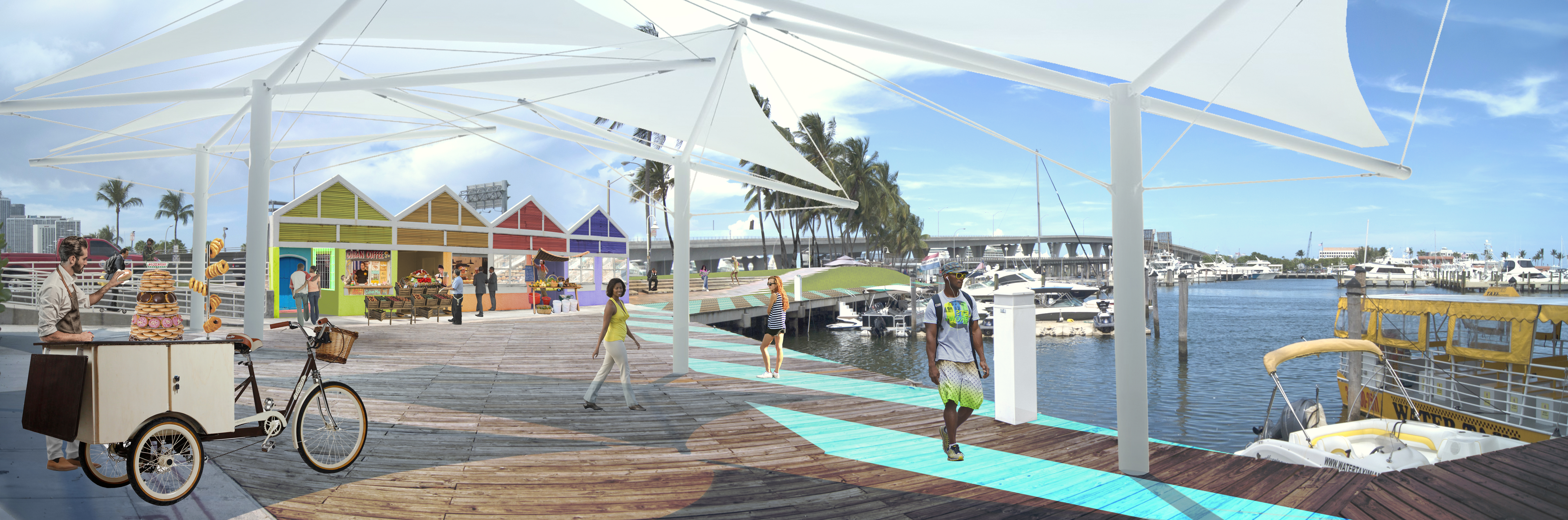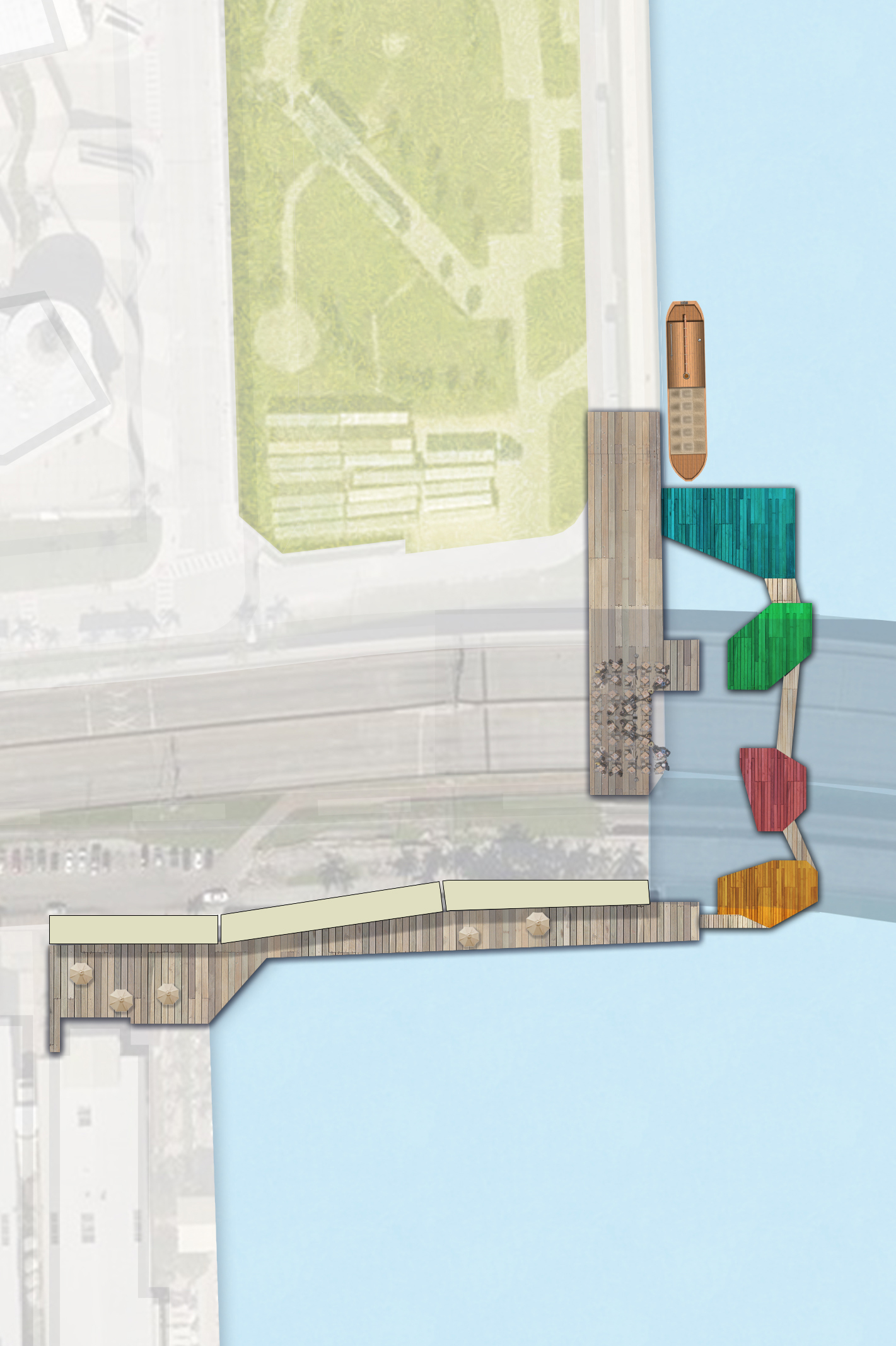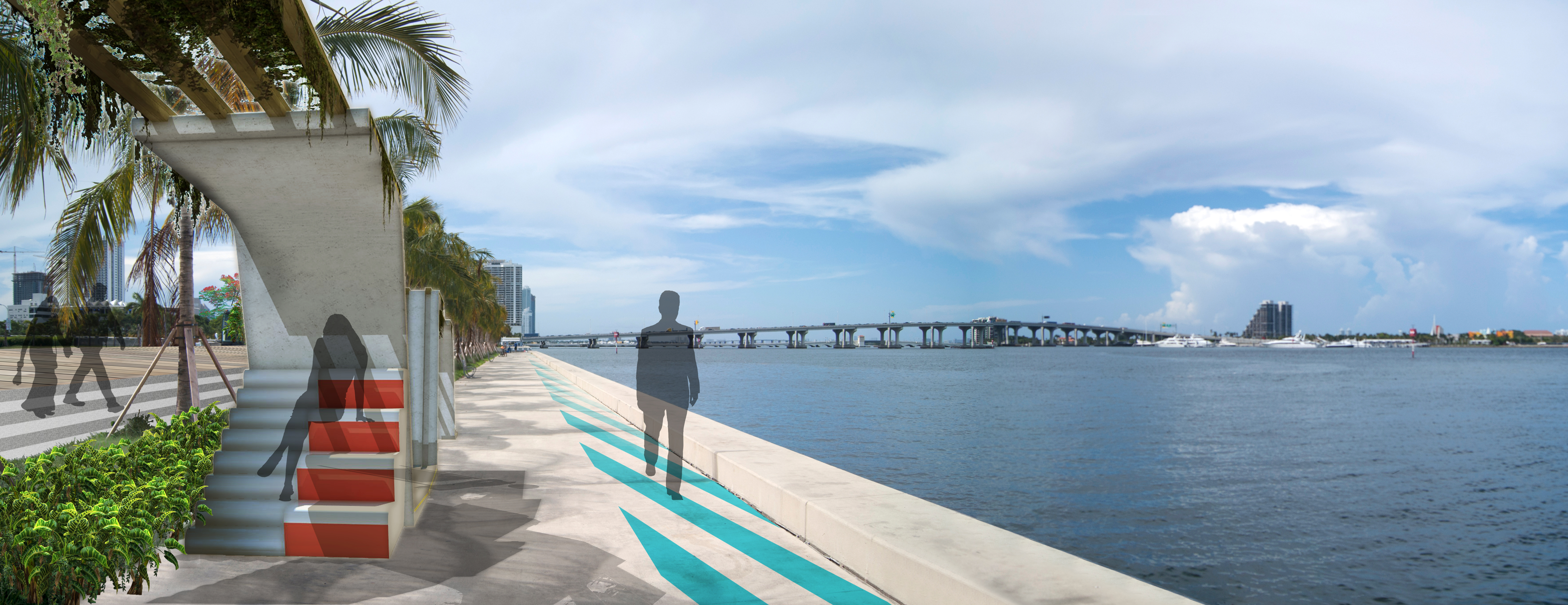 for the Miami River Roam RFP utilizes prefabricated concrete modules which help explore Baywalk and the Miami river. The modules are linear in nature