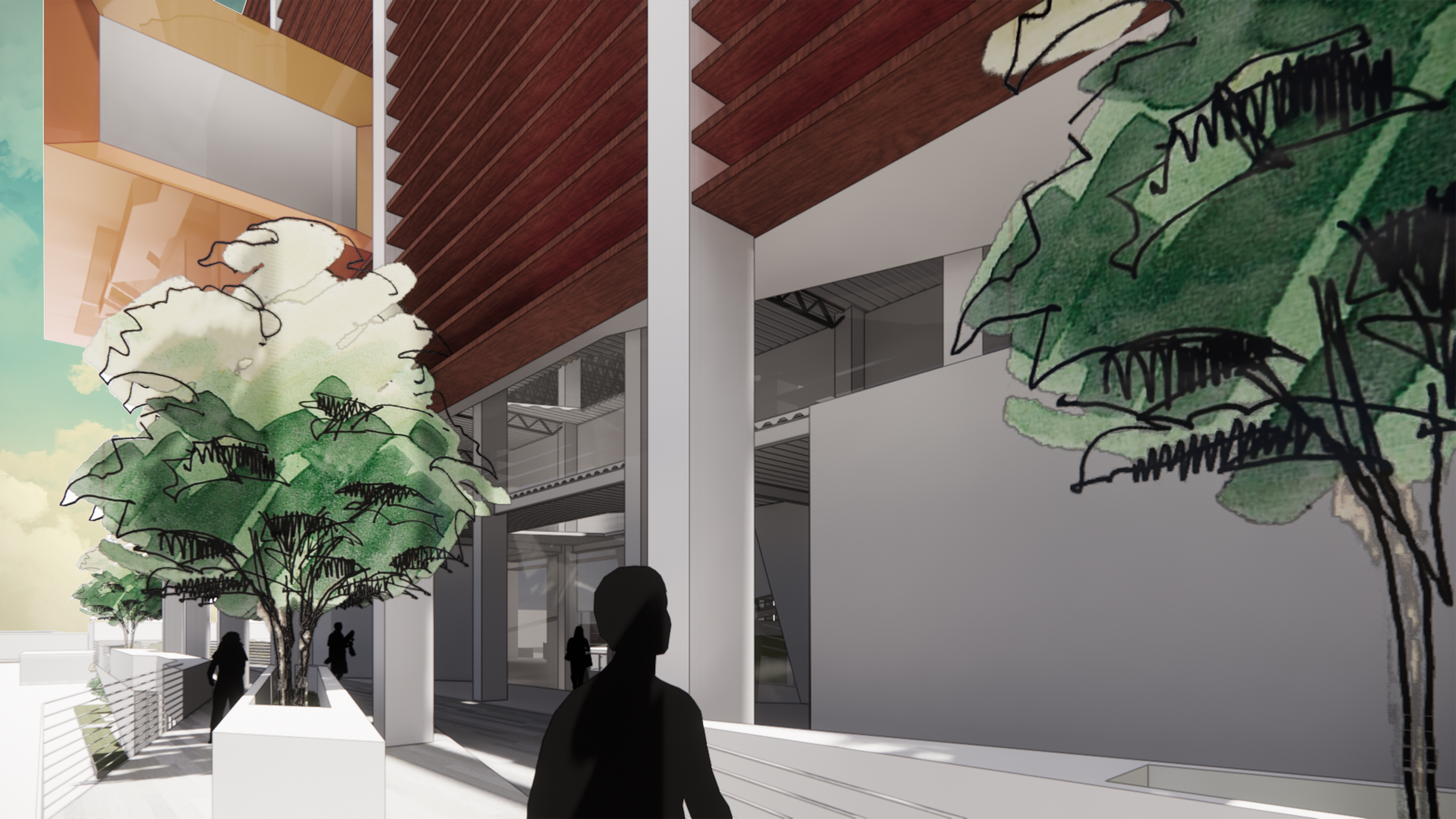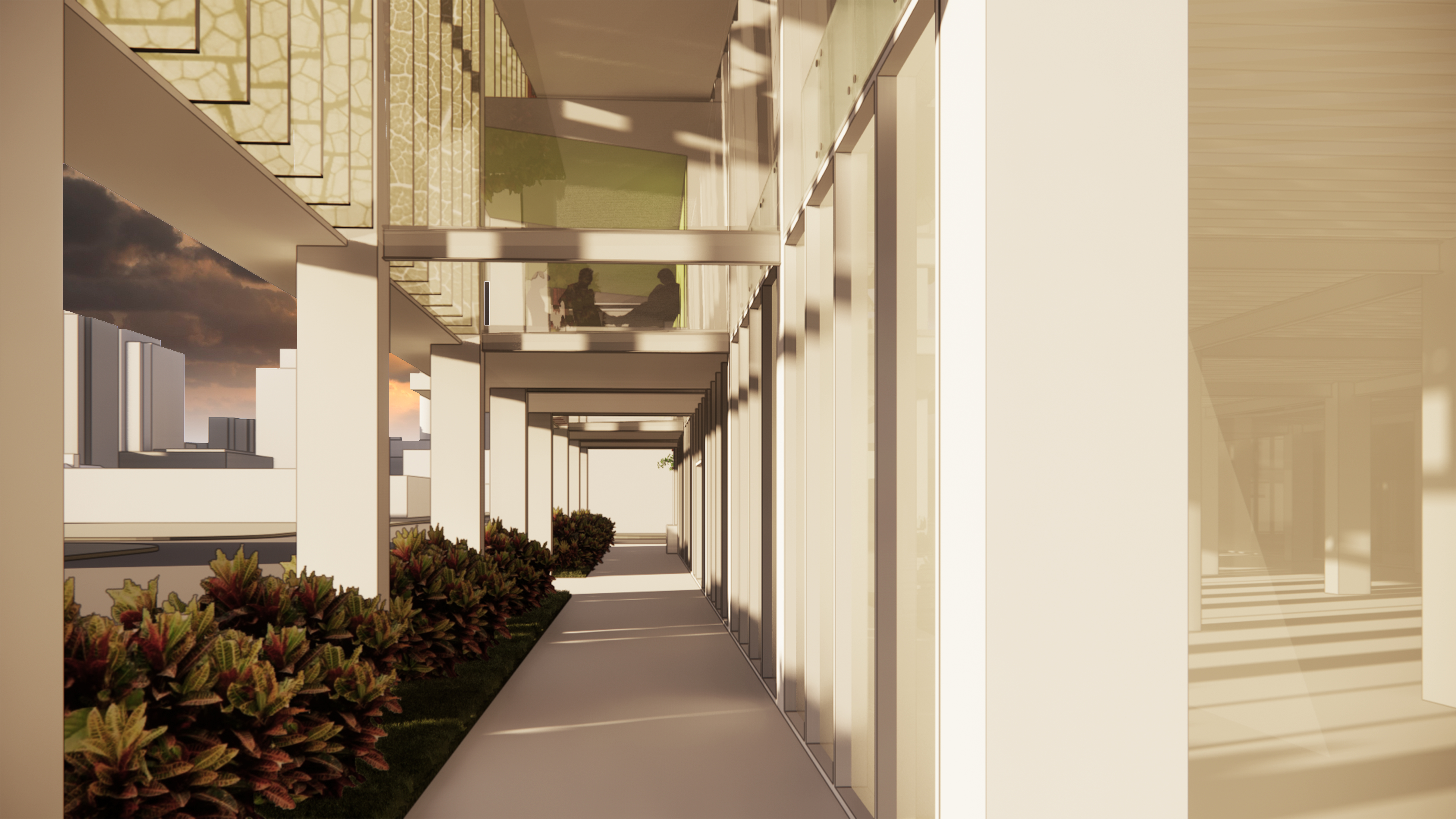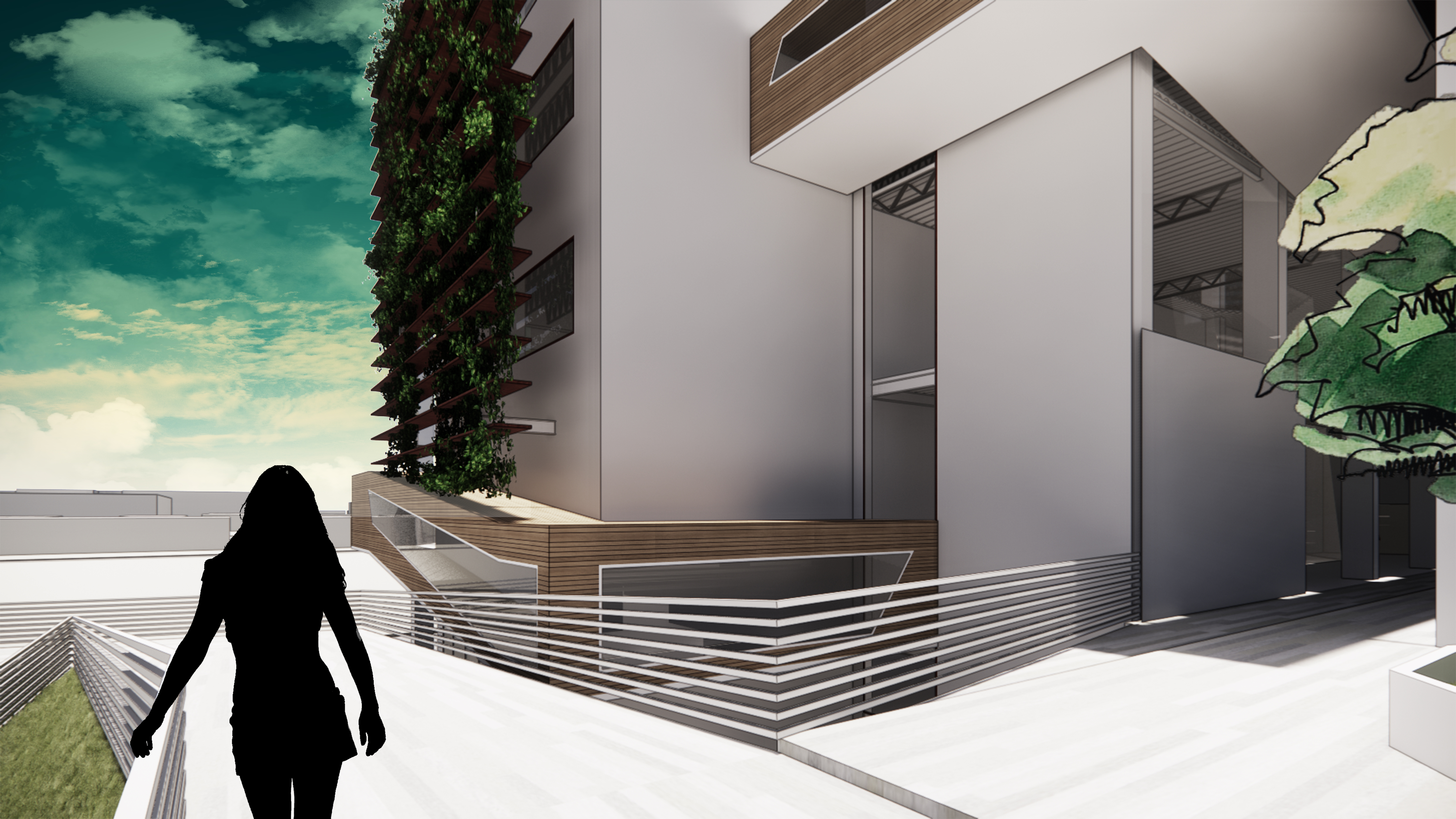 The Fort Lauderdale Environmental Research institute emerges from the idea that extending beyond the site dissolves the realm of the private building to the benefit of its public context. This gesture of reaching out allows a rapid integration and revitalization of an industrial area of Fort Lauderdale, by constructing public space envisioned to overcaome the challenge of man-made polar melting and ocean level rise.