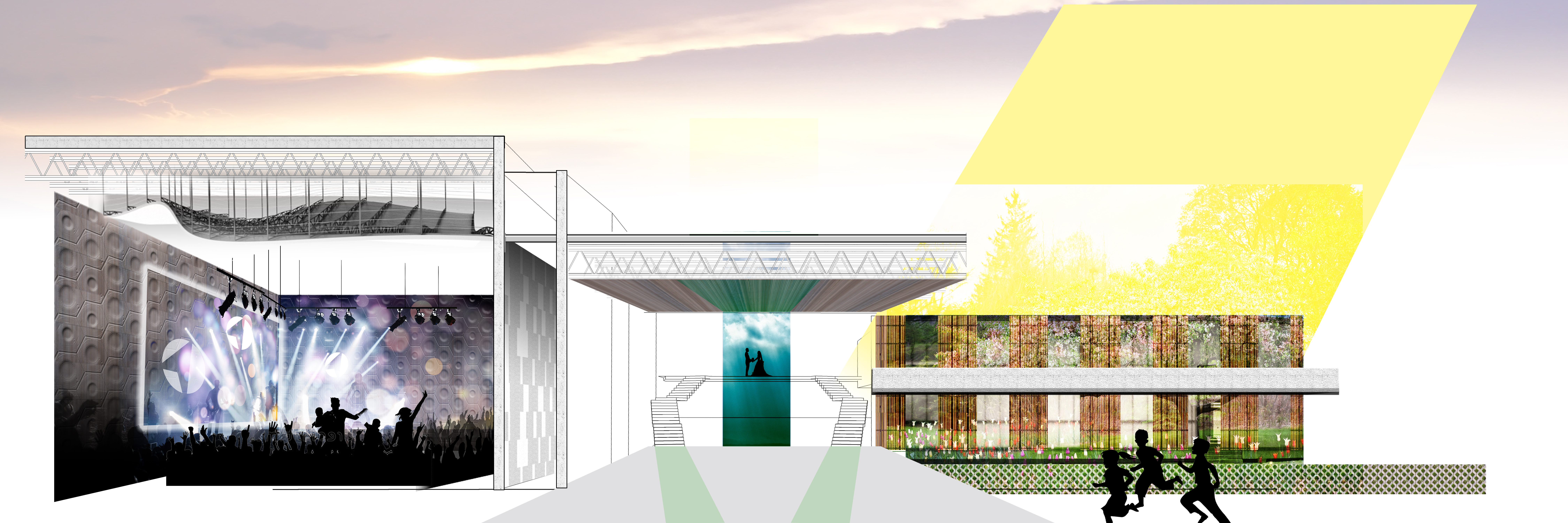 and educational campus. Housing performance spaces, a worship hall and a youth activities center, the design seeks to invite meditation about the space between the physical and spiritual states of