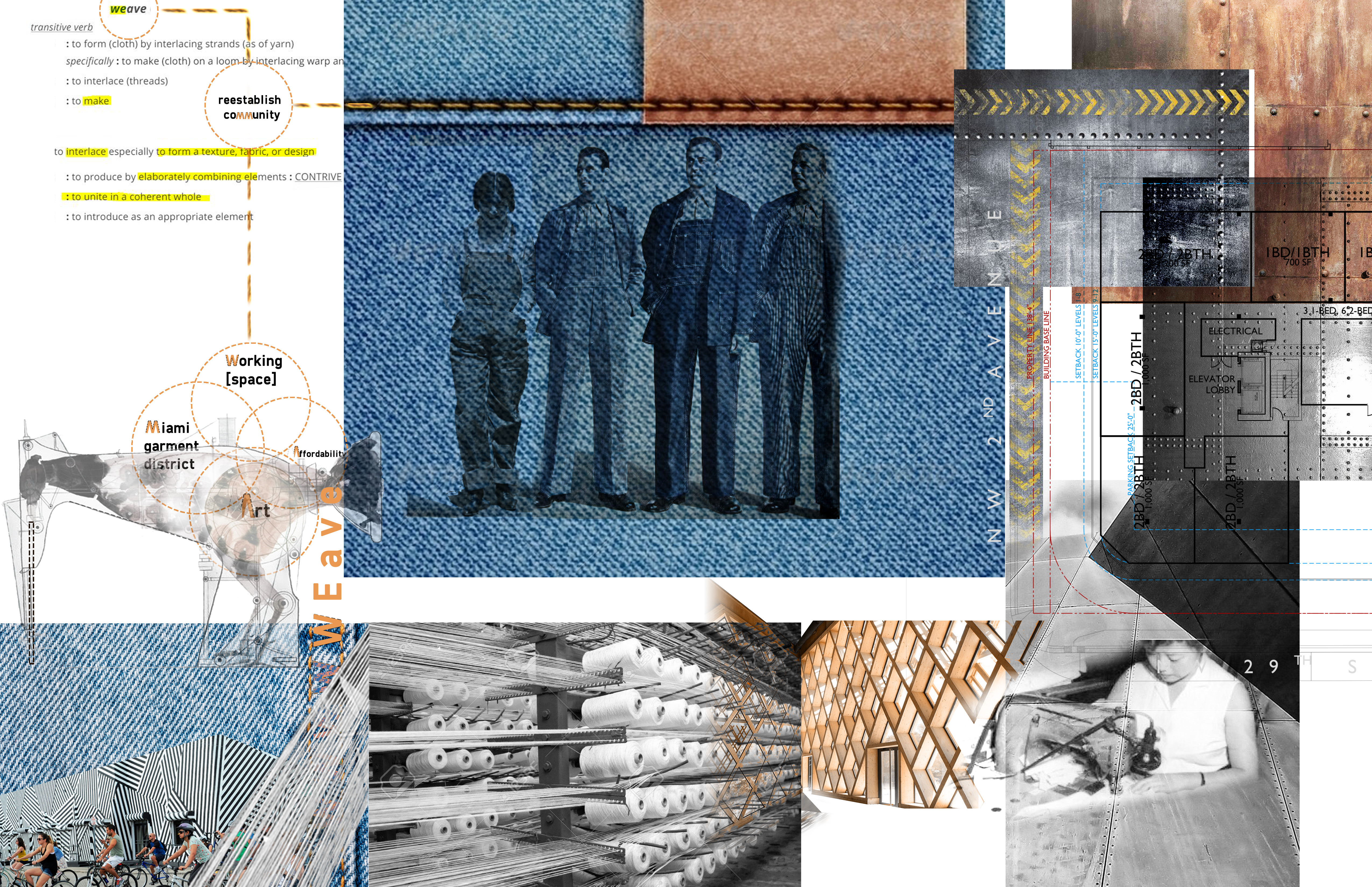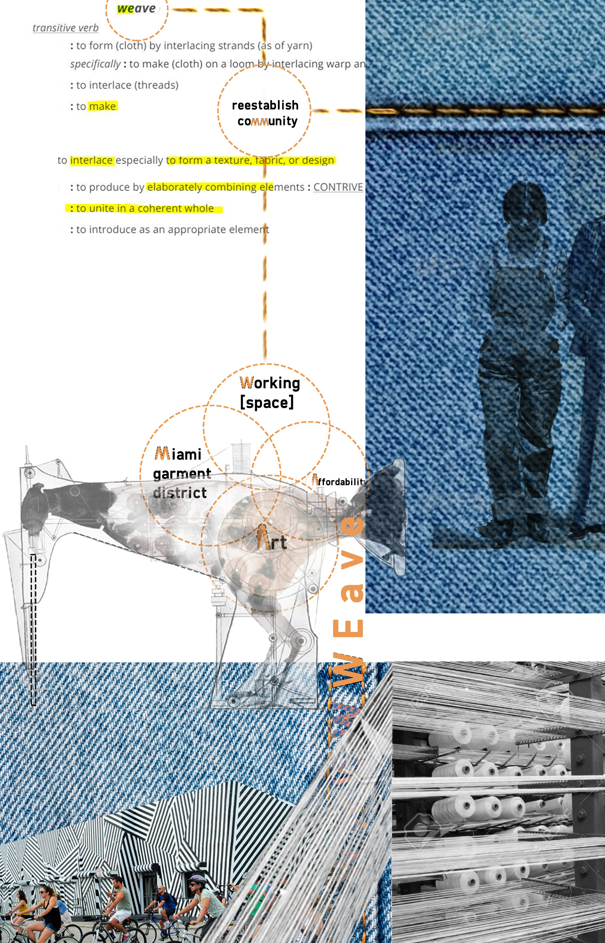 The materiality, colors and textures celebrate the industrial, entrepreneurial nature of the site with rake-textured, denim-colored stucco, copper cladding, rivets and weaving steel wire that are reminiscent of denim and of fabric and loom machines.