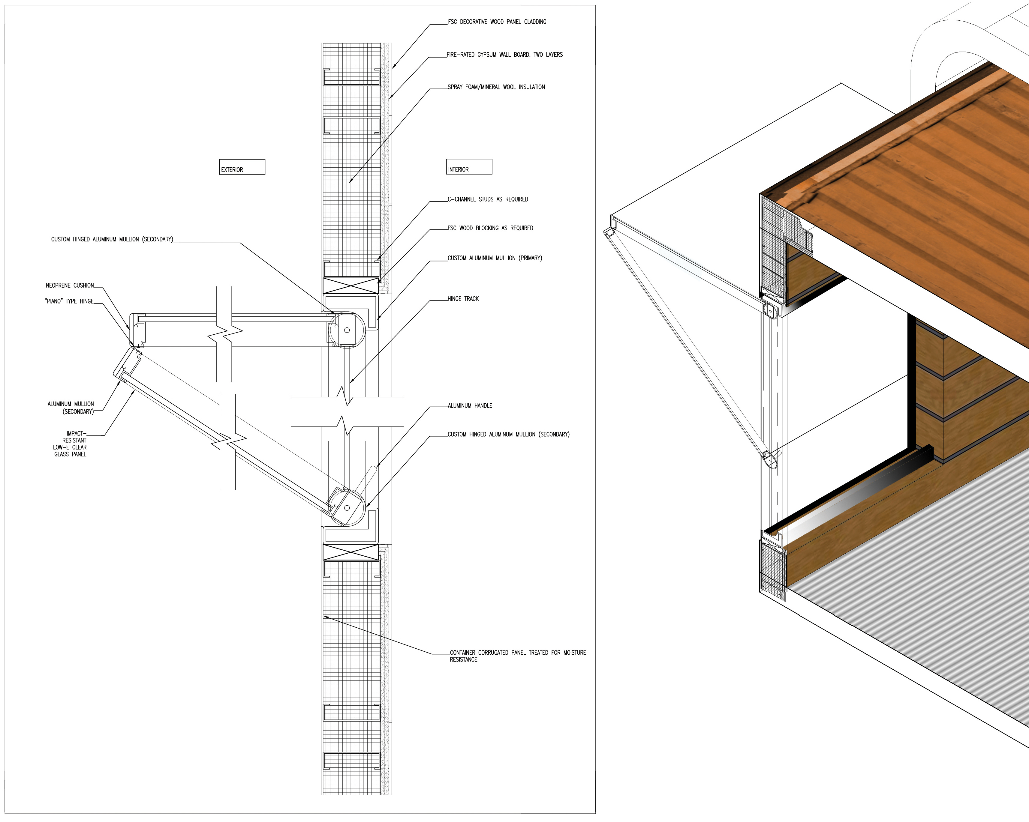 model of operable window component showing idea for individually-sliding shades
